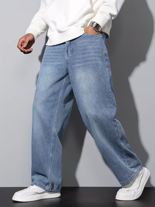 Premium Men’s Lycra Stretch Baggy Whisker Wash Denim