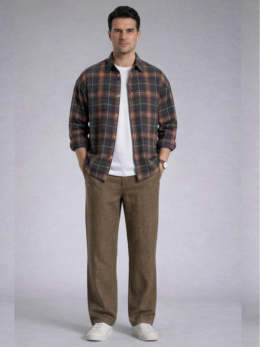 Premium Linen Cargo Pants for Men - BROWN