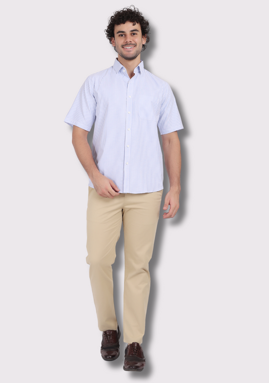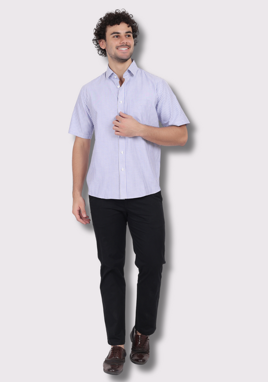 Half Sleeve Lining Blue Shirts For Men