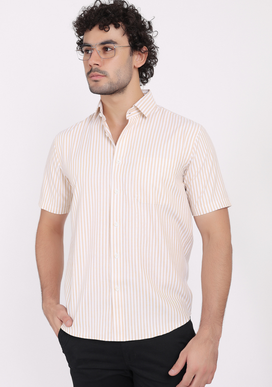 Half Sleeve Lining Brown Shirts For Men