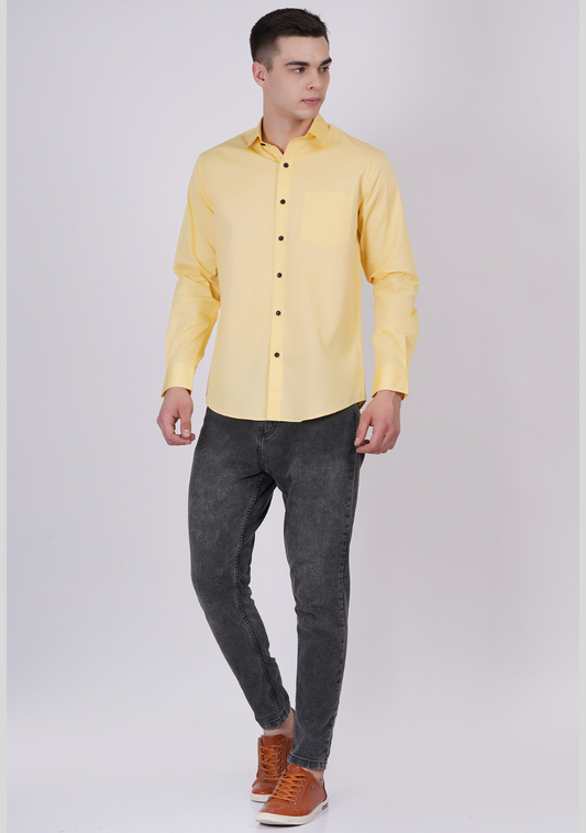 Lemon Formal Shirts For Men With Single Pocket