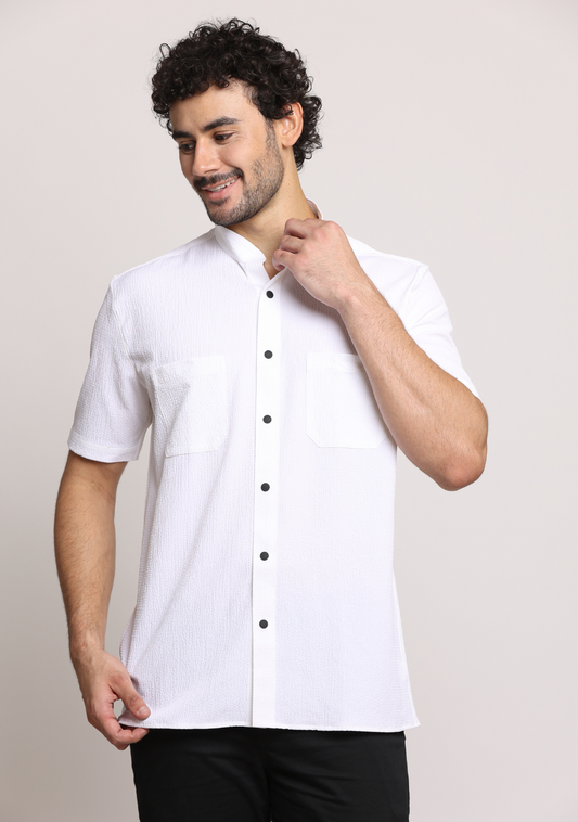 Men Double Pocket Popcorn Premium White shirts