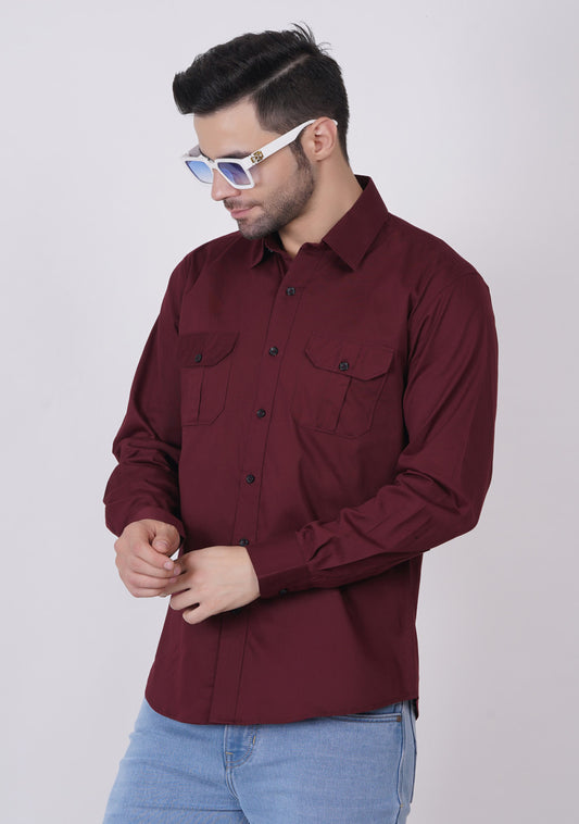 Purple Cotton Satin Fabric Formal Shirts For Men