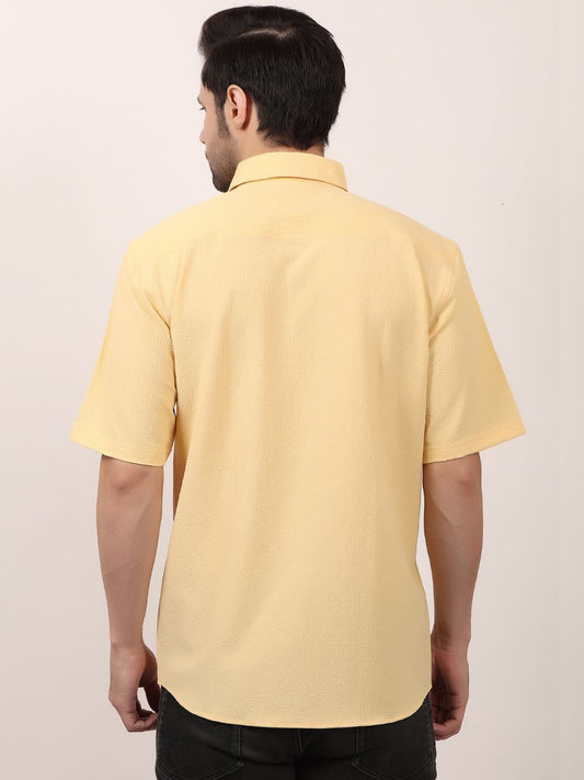 Yellow Popcorn Casual Half Sleeve Shirt For Men