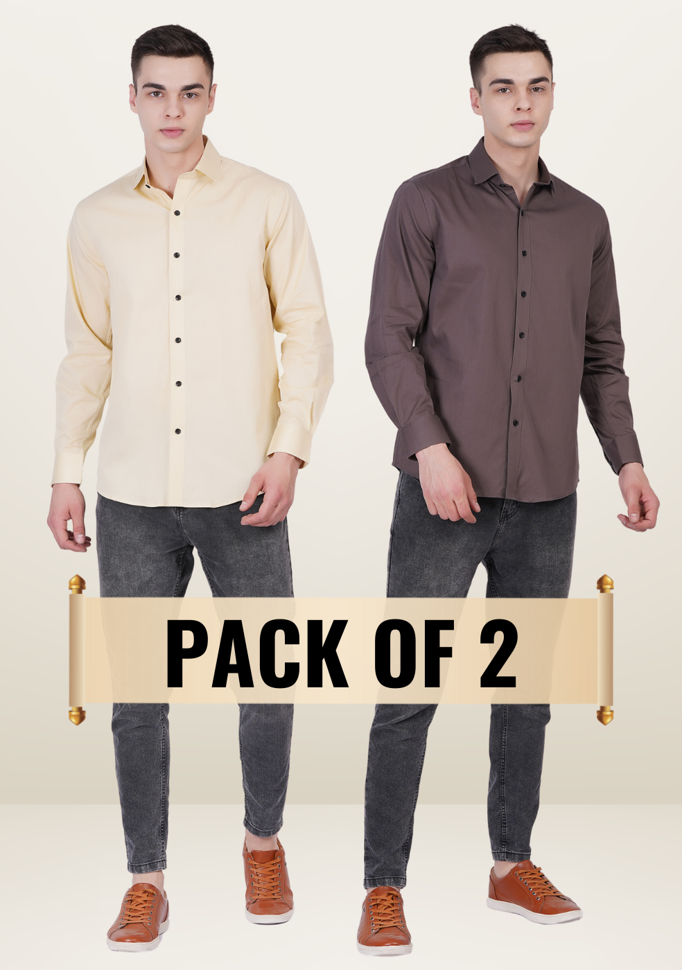ASHTOM provide high quality latest collection of Men Shirts Without Pockets Pack of 2 Tailored in good quality fabric. ASHTOM is to make you style in the minds of people, Cotton Fabric, Bio wash premium quality for extra softness. ASHTOM shirts now with our pocket friendly prices. This pattern shirts with a perfect fit will give your attire a structured design.