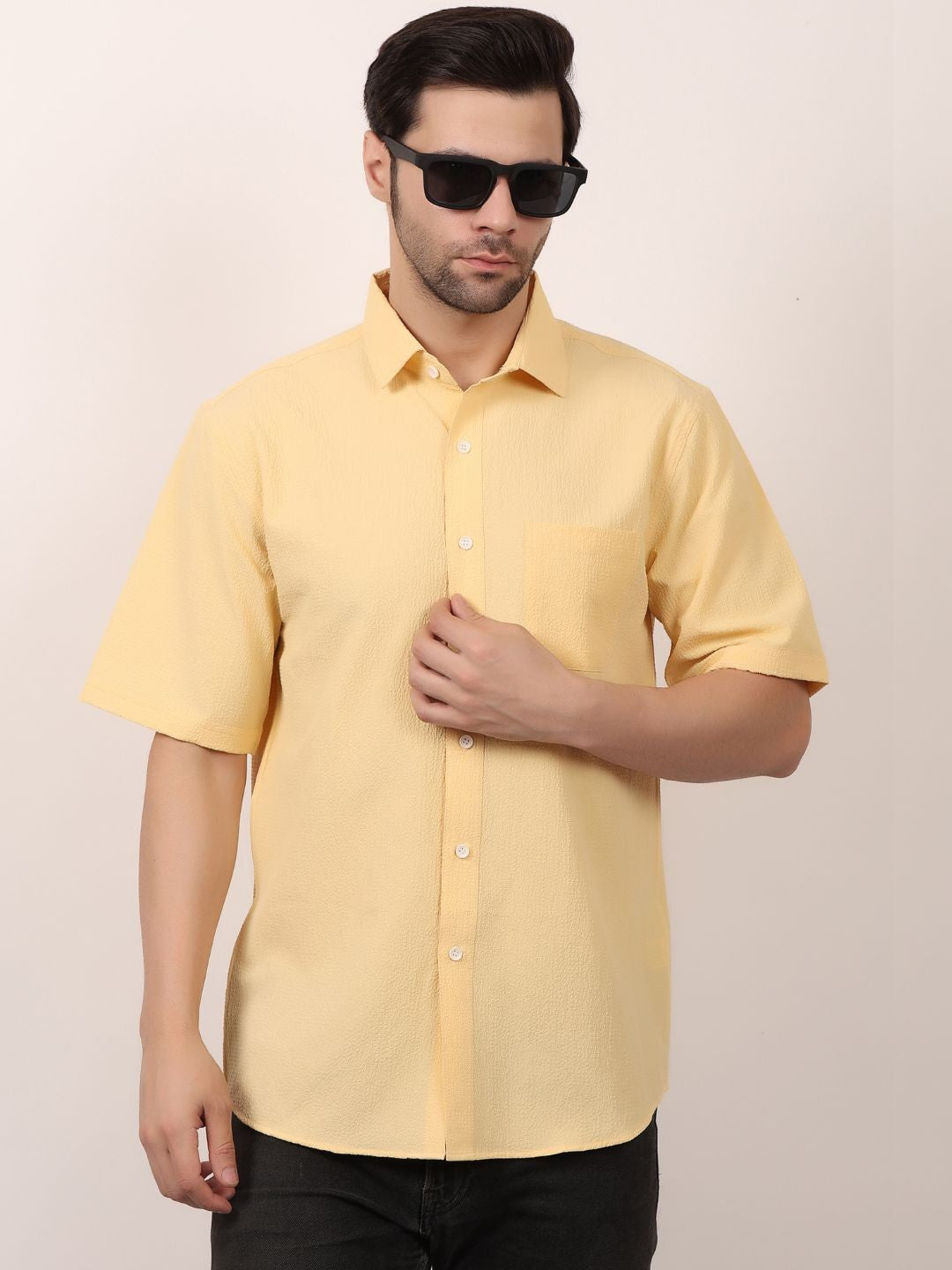Yellow Popcorn Casual Half Sleeve Shirt For Men